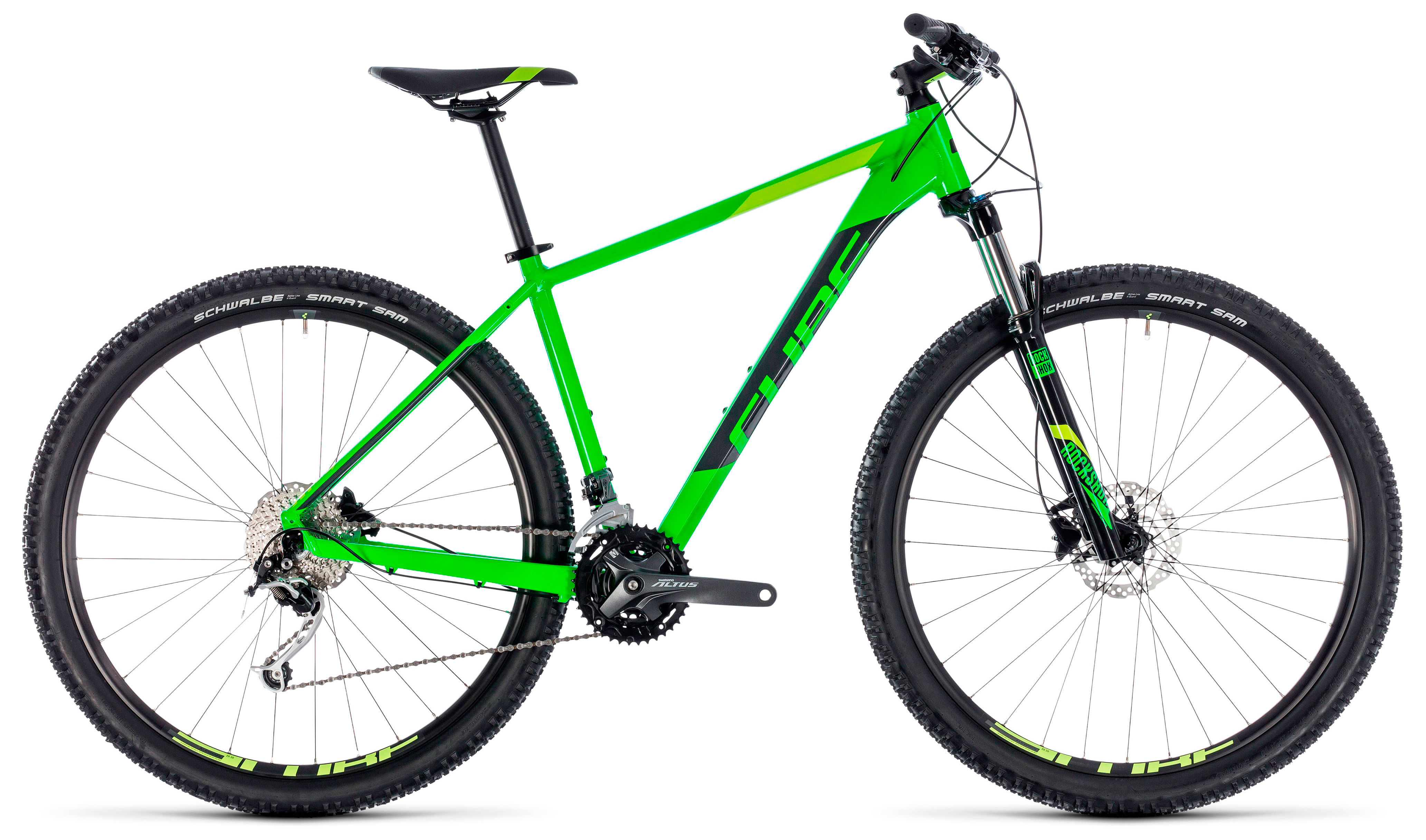 Найнеры можно назвать универсальным типом байков, так как в огромной коллекции найдутся подходящие варианты и для простых любителей велопрогулок, и для профессионалов. Велосипед Cube Analog 29 (2018) — образец идеального сочетания хороших скоростных характеристик и максимального комфорта. Выпущен в 2018 году. Колеса 29" дюймов отлично переносят высокие нагрузки. Дисковые гидравлические тормоза хорошо слушаются, что гарантирует успешное выполнение любых маневров. Модель не боится сложных трасс и бездорожья.
